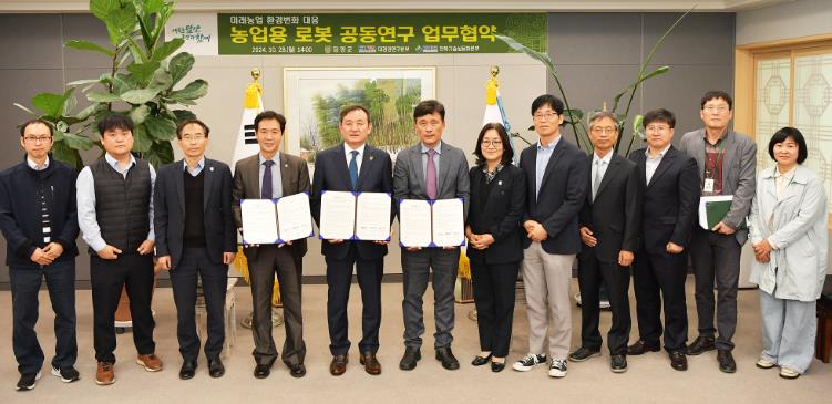 이병노 담양군수는 “이번 협약을 통해 첨단 농업기술의 허브로 발돋움할 계기를 마련하고, 스마트팜 및 인공지능 로봇을 활용한 효율적인 농업 생산 시스템을 구축할 것”이라며 “세 기관이 협력해 농업 생산성을 높이고, 환경친화적인 농업 모델을 개발해 지역사회 발전과 지속 가능한 미래 농업을 선도하겠다”라고 전