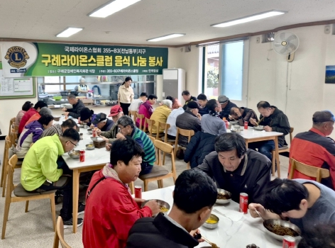 ![]() 이현창 전남도의원, 구례라이온스클럽과 따뜻한 음식 나눔 봉사 참여 |