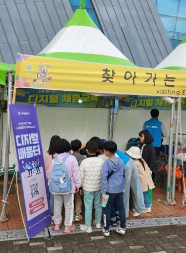 이번 국향대전 축제장에 마련된 에듀버스 체험존에서는 디지털 기기 활용 교육뿐만 아니라 VR 체험, 키오스크 이용법, 헬스케어 기기 시연 등 다양한 디지털 기기를 직접 다뤄보는 시간을 가졌다.