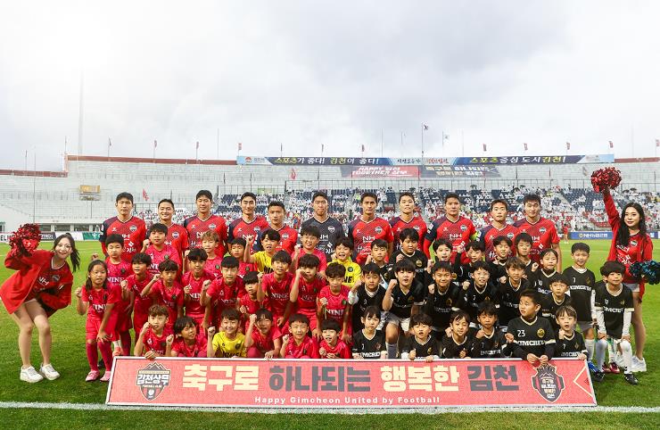 ![]() 지난 19일 울산전 홈경기에서 김천상무 선수들이 단체사진을 찍고 있다 |
