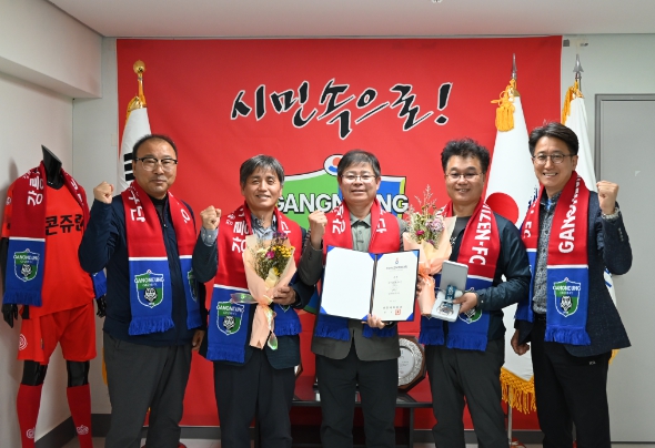최종원 전국이통장연합중앙회 강릉시지회장은 “2025년 홈경 기 관중참여 응원은 물론 강릉시민축구단이 앞으로 명문구단으로 거듭날 수 있도록 적극 돕겠다”며“강릉시민축구단의 전국체전 준우승도 시민 모두가 함께 축하한다”고 덧붙였다.