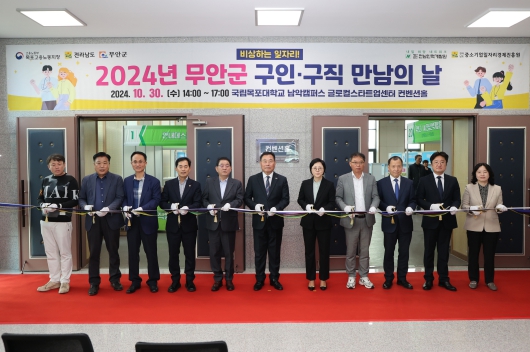 2024 무안군 구인·구직 만남의 날 행사는 고용노동부 목포지청과 전라남도, 무안군이 주최하고, 전남인력개발원과 전라남도 중소기업일자리경제진흥원이 주관하여 목포대학교 남악캠퍼스 글로컬스타트업센터 내 컨벤션 홀에서 열렸다.