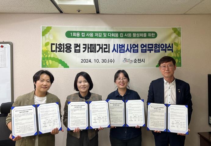 ![]() 순천시, ‘다회용 컵 카페거리 시범사업 업무협약식’ 개최 |