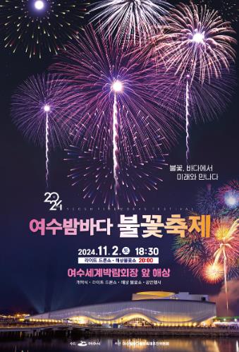 ‘불꽃, 바다에서 미래와 만나다’를 주제로 열리는 이번 행사는 오후 6시 식전 공연으로 시작되며, 행사의 하이라이트인 해상 불꽃쇼와 라이트 드론쇼는 저녁 8시부터 35분간 진행돼 여수밤바다를 화려하게 수놓을 예정이다.