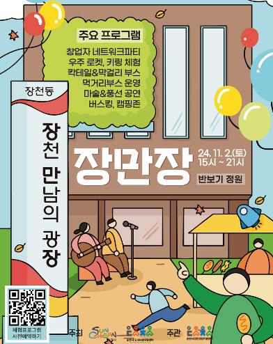 행사의 마무리에서는 '어쩌다, 장천' 코너를 통해 기존 창업자, 신규 및 예비 창업자, 장천동 한달살기 참가자들이 자유롭게 자기소개와 축제 단상에 대한 소통 시간을 가질 예정이다.