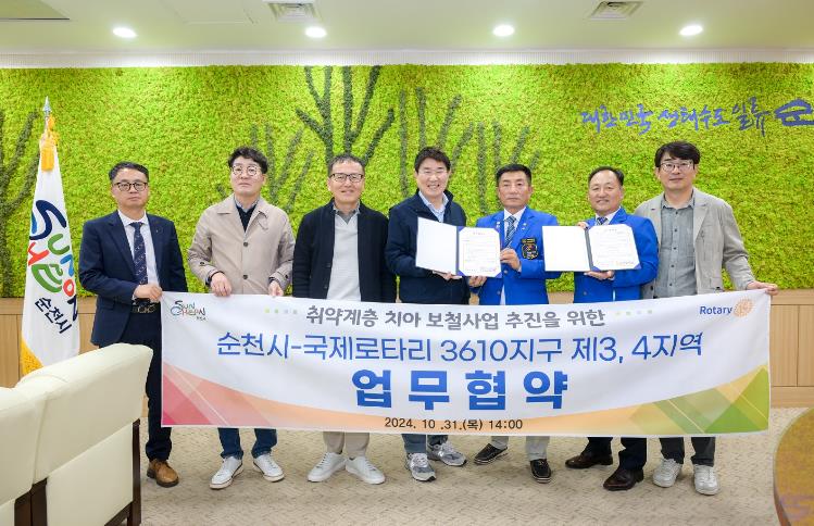 이번 협약에 따라 순천시는 치아 건강 개선이 필요한 대상자를 추천하고, 로타리클럽은 사업비 지원 및 지역 치과병원과 협력하여 사업을 추진할 예정이다.