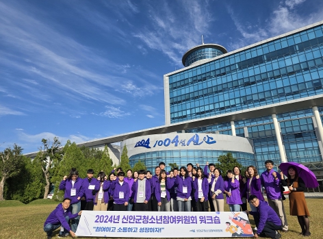 ![]() 신안군청소년참여위원회 학생들이 기념 촬영을 하고 있다. |