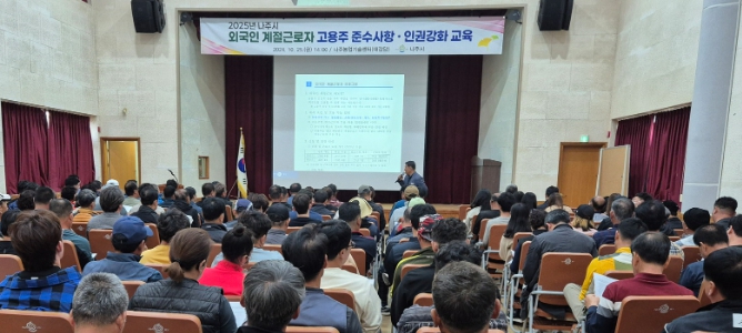 ![]() 나주시, 외국인 계절근로자 교육으로 농촌 인력난 해소에 박차 |