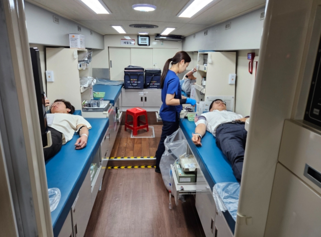 헌혈 주민 편의를 위해 군청과 군 보건소 주차장 헌혈 버스에서 진행했다.
