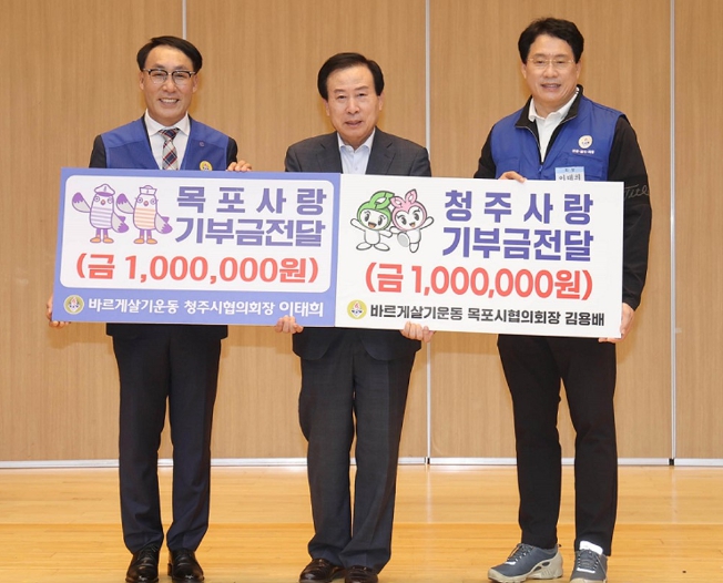 김용배 목포시협의회장은 “이번 상호기부를 통해 2008년부터 자매도시로 이어진 청주와 목포의 협력이 강화되길 바라며, 지역 균형발전을 위해 함께 힘쓰겠다”고 말했다.