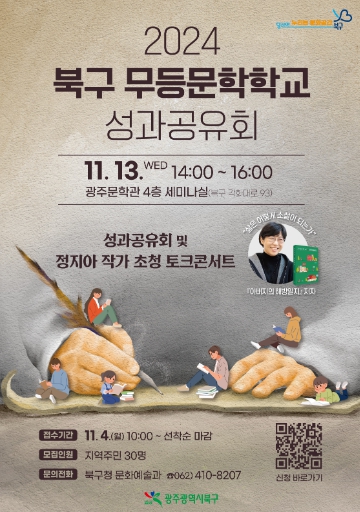 문인 북구청장은 “무등문학학교 수강생들의 생애 첫 작품 감상과 더불어 유명작가 작품․강연도 즐길 수 있는 이번 성과공유회에 주민들의 많은 관심과 성원 바란다”며 “앞으로도 주민들이 문학 활동을 폭넓게 누릴 수 있도록 다양한 정책들을 발굴해 나가겠다”고 말했다.