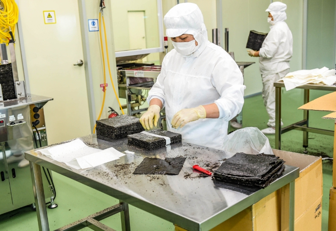 ![]() 목포 대양산단 내의 가공공장에서 마른 김을 생산하고 있다 |