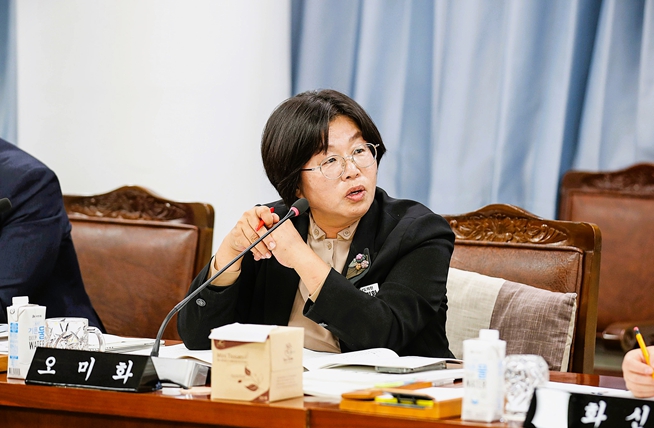 ![]() 전라남도의회 제386회 제2차 정례회 기획행정위원회 소관 도민행복소통실 행정사무감사(1일)에서 오미화 의원이 집행부를 향해 질의하고 있다. |