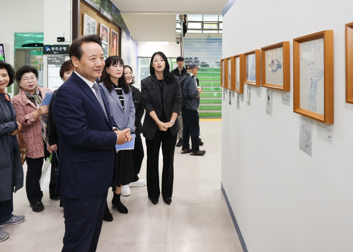 이번 전시는 구청 1층 로비에서 5일부터 오는 15일까지 열리며, 한국문화예술교육진흥원 ‘꿈다락 문화예술학교’에 참여한 지역주민 20여 명의 드로잉 작품 20여 점을 선보인다. 개막 행사는 5일 오전 9시 30분 전시장에서 진행됐다.
