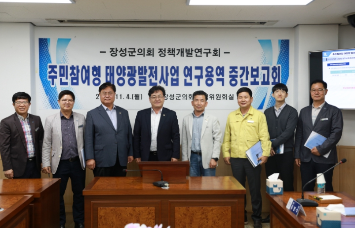 이와 관련하여 지난 4일‘장성군 주민참여형 태양광발전사업 연구용역’ 중간보고회가 군의회 상임위원회의실에서 개최됐다.