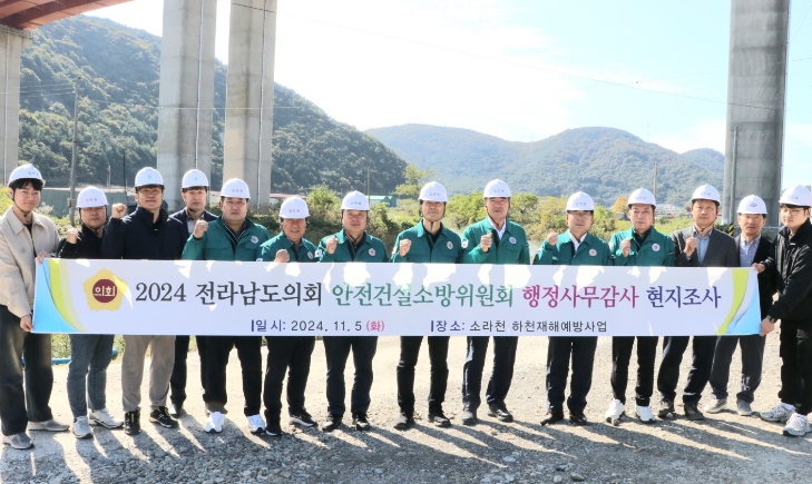 안전건설소방위원회의 2024년 행정사무감사 현지조사는 4일 고흥 신흥 부터 용동간 지방도 확포장공사와 여수소방서 및 화학119구조대를 5일에는 소라천 하천재해 예방사업을 끝으로 현지조사를 마무리하고, 6일부터 8일까지 도민안전실, 소방본부 및 22개 소방서와 전라남도교통연수원, 건설교통국을 대상으로 행정사무감사를 실시한다.