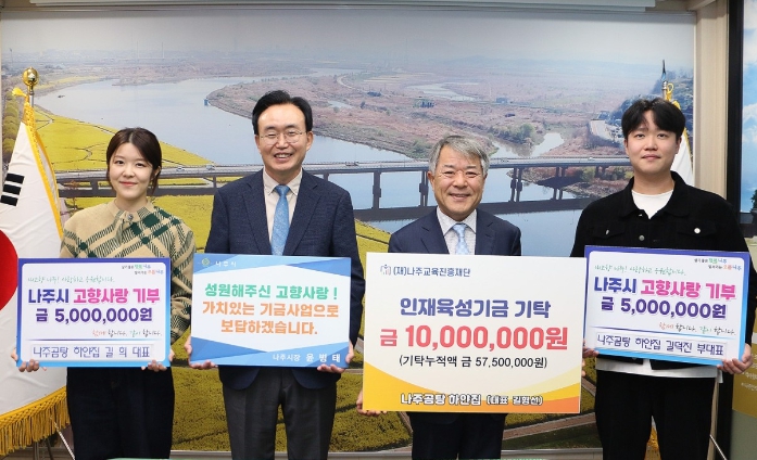 한편 나주시는 고향사랑기부제 지정기금 사업으로 ‘안세영 체육관 기념공간 조성 및 꿈나무 육성 지원사업’과 ‘타오르는 강 문학관 조성 지원사업’을 선정해 지역 스포츠와 문화 발전에 이바지할 계획이다.