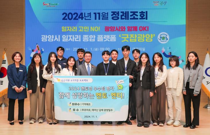 이어 “지난 9월 새내기 공직자 24명이 공직에 들어왔고 10월에도 신규 공무직 13명이 들어와 근무하고 있다, 광양시 미래를 이끌어 갈 온 신규 직원들이 조직에 쉽게 적응할 수 있도록 선배 공무원들이 잘 이끌어 주길 바란다”라고 말했다.