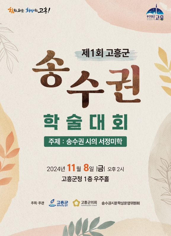 군 관계자는 “송수권 시인은 고흥뿐 아니라 우리나라 문학계의 귀중한 문화자원임에도 그동안 그의 문학적 가치가 제대로 평가받지 못했다”며 “이번 학술대회를 시작으로 송수권 선생의 문학적 업적을 꾸준히 연구하고, 그 문학 정신을 기려 한국문학 발전과 지역문화 저변 확대를 위해 노력하겠다”고 말했다.