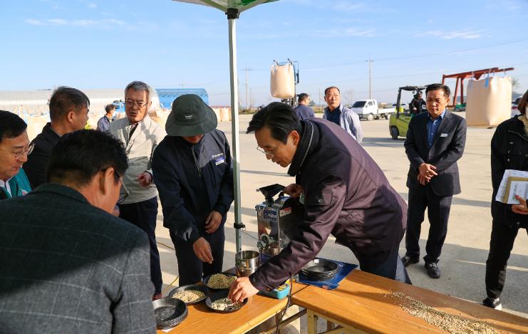 우승희 영암군수는 “생산비 증가와 불안정한 쌀값에 수발아, 벼멸구 등 농업재해까지 더해진 어려운 여건 속에서도 벼를 잘 재배해 준 농가의 노고에 감사드린다. 수매장에서 한 건의 사고도 없이 안전하게 이뤄지도록 함께 주의를 기울이자”라고 당부했다.