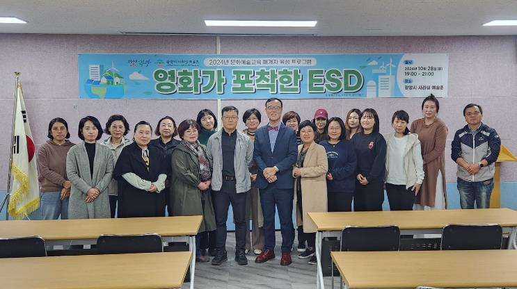 김명덕 문화예술과장은 “문화예술교육 매개자 육성 프로그램은 지역 문화예술교육 생태계를 풍부하게 만들어가는 훌륭한 활동이다”라며 “지역 문화예술이 ESG와 연계해 성장할 수 있도록 지원을 아끼지 않겠다”라고 전했다.