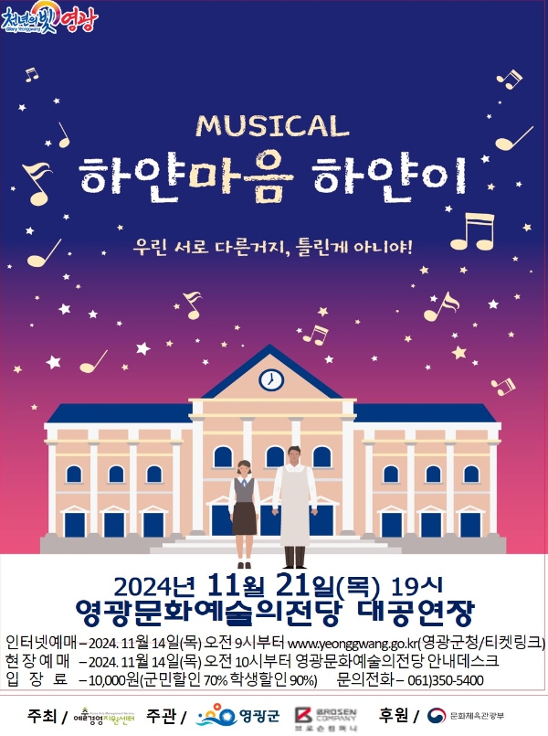 ![]() 영광문화예술의전당, 뮤지컬 하얀마음 하얀이 공연 |