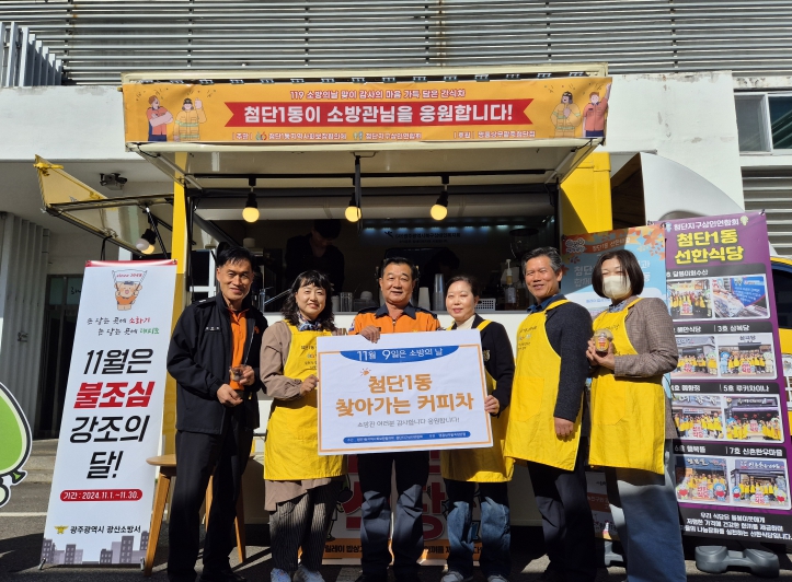 이날 행사는 지사협과 첨단지구상인연합회가 협업해 추진하는 선한식당의 사업으로, 소방관들을 노고를 격려하기 위해 제8호 선한식당에 지목된 명품상무팥죽 첨단점(대표 나지영)이 50인분의 커피와 백향과차 등 간식을 마련했다.