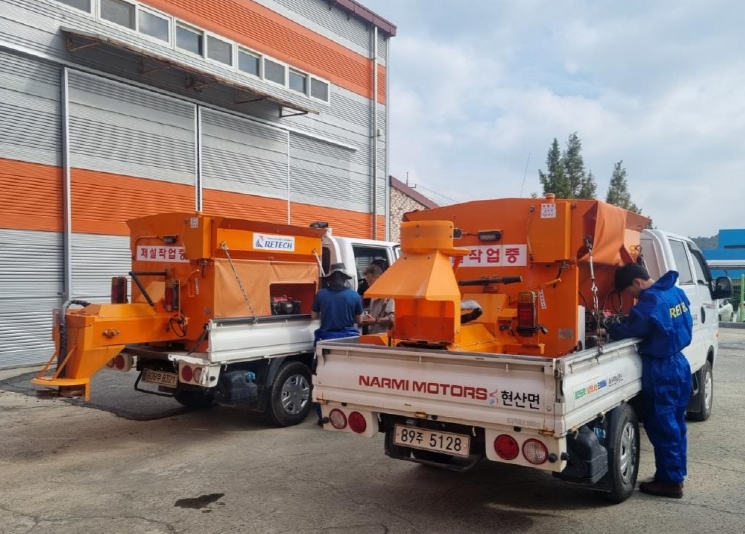 사전에 14개 읍면을 순회하며 작동여부를 점검하고, 소요부품을 확인한 후 군 제설창고에서 장비제작 업체의 서비스센터와 합동정비를 실시했다.