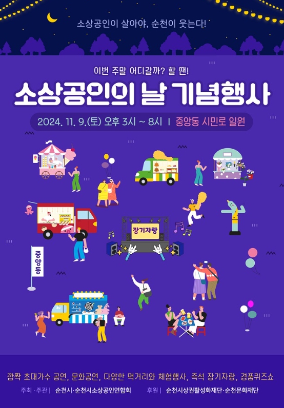 이번 행사는 순천시소상공인연합회가 주관하고, 순천시상권활성화재단, 문화재단, 원도심상인연합회가 공동 후원하여 마련됐다. 원도심의 활기를 되찾고자 하는 각 단체와 소상공인들이 뜻을 모아 다양한 프로그램을 기획하며, 지역경제 활성화를 위한 의미 있는 축제로 자리매김할 예정이다.