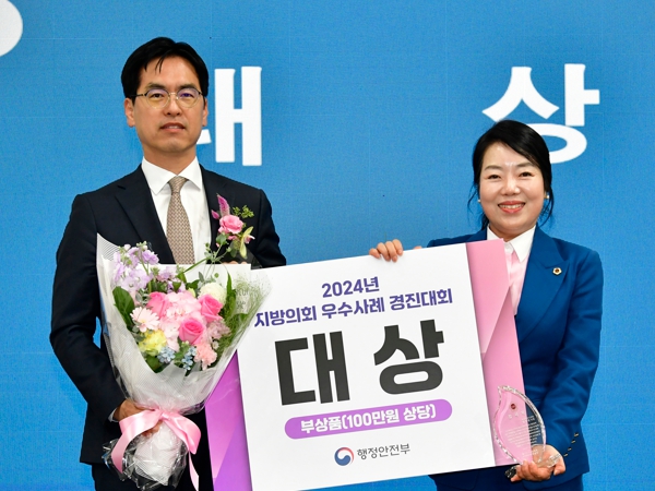 행안부 '지방의회 우수사례 경진대회'는 전국의 시·도 및 시·군·구 의회가 참여한가운데 △자치행정 △지역경제 △문화복지 △의회혁신 등 4개 분야에서 106개 사례 중 1차 서류 심사에서 17개 사례를 선정하고 상위 9개 사례를 본선에 진출시켜 현장 발표와 심사를 통해 최종 순위를 결정한다.