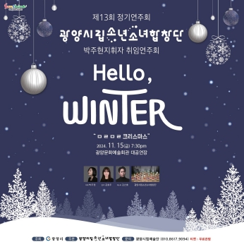 ![]() 광양시립소년소녀합창단, 15일 공연 개최 ‘Hello, Winter’ |