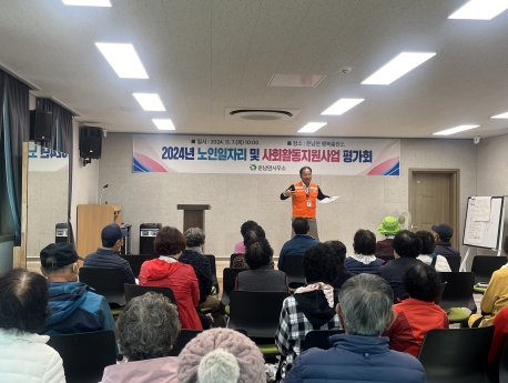 이번 평가회는 활동 참여 어르신의 안전의식 고취를 위해 남도안전학당 전문강사를 초빙했으며, 노인일자리 및 사회활동지원사업 활동을 마무리하면서 활동의 만족도 및 개선점을 파악하기 위한 설문조사를 실시했다.