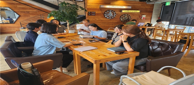 광주북구시설관리공단 이사장과 직원들이 짝꿍 독서토론을 즐기고 있다.