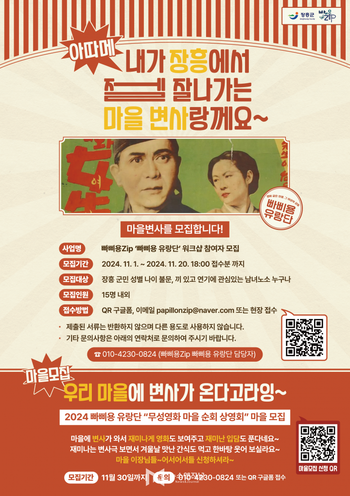 장흥군청 주최하고 빠삐용zip이 주관하는 이번 공연에서는 고 윤대룡 감독의 1948년 작품 <검사와 여선생>이 상영되며, 30년 이상 광주·전남에서 활동하는 배우 노희설 씨가 변사로 참여한다.