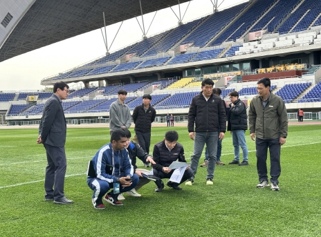 광주시는 이번 실사에 대비해 폭염·폭우 등으로 훼손된 잔디 부위를 중심으로 롤 잔디 보식을 진행했다. 지난달 14일부터 나흘동안 경기장 중앙부분 약 1500㎡(450평)를 롤 잔디로 깔고, 그외 부분은 코어 보식을 실시했다. 아울러 영양제, 비료 살포, 병충해 작업 등을 통해 건강한 잔디 환경을 조성했다.