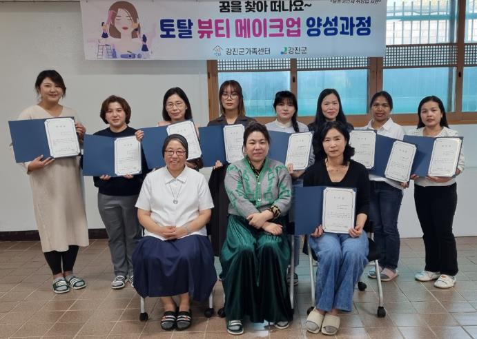 강진군의 지원으로 운영된 토탈뷰티 메이크업 과정은 결혼이민여성들의 취업역량 강화와 미래의 삶에 대한 준비를 위한 성장지원 과정이다.