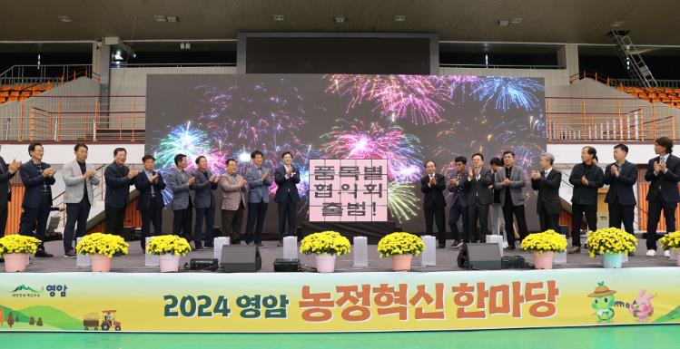 우승희 영암군수는 “농업인의 날을 기념하여 개최한 ‘2024 영암 농정혁신 한마당’은 급변하는 농업 환경 속에서 영암 농업의 지속가능한 발전을 위한 혁신의 장이며, 미래를 향해 나아가는 소통과 협력의 장이다. 이번 행사를 기점으로 민관이 함께 지속적으로 미래농업 정책을 발굴하고 협치농정을 펼쳐 나가자”라고 강조했다.