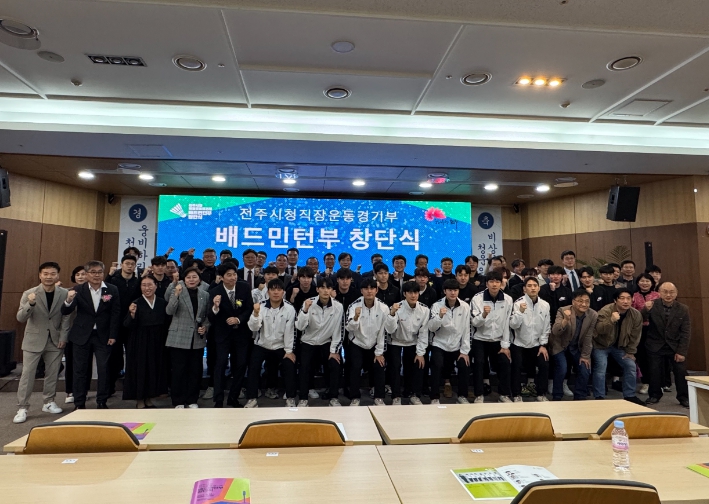 전주시는 13일 국립유형유산원 어울마루 3층 국제회의장에서 ‘전주시청 직장운동경기부 배드민턴부’의 창단식을 갖고 배드민턴의 저변 확대 및 스포츠 발전의 시작을 알렸다.