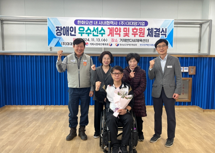 특히 11월 13일, 거제시 한화오션의 사내 협력사인 ㈜대대양기업(대표 양대석)은 장애인 체육 우수선수 2명과 고용계약을 체결하고, 1명에게는 1년간의 후원을 약속했다.