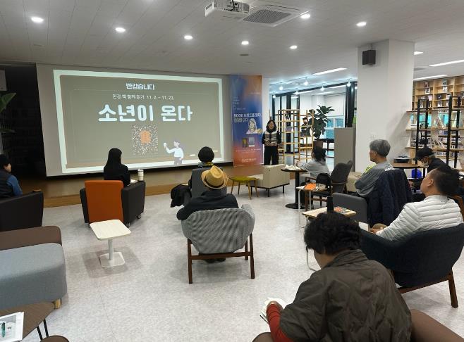 'BOOK 트렌드를 읽다, 한강을 읽다'는 노벨문학상 수상 작가 한강의 작품을 함께 읽고 토론하는 독서 모임으로, 11월 2일부터 11월 23일까지 ‘소년이 온다’ 작품을 주제로 1기 독서 모임이 운영 중이다.