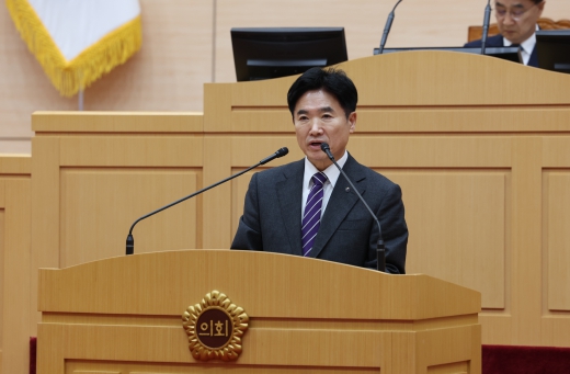 ![]() 김대중 전남교육감이 전라남도의회 제386회 제2차 정례회에서 2025년 전남교육 정책 방향을 설명하고 있다. |