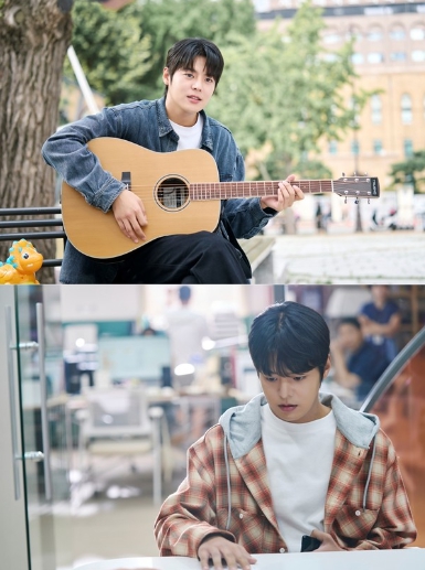 공개된 사진 속에는 불안정한 청춘 유진우의 숨은 이면이 담겨 있다. 기타를 치며 반짝이는 재능을 뽐내던 유진우가 세상이 다 무너진 표정을 하고 앉아 있는 것. 노래를 하며 즐거워하던 모습은 온데간데없이 까맣게 꺼져버린 유진우의 눈빛이 씁쓸함을 자아낸다.