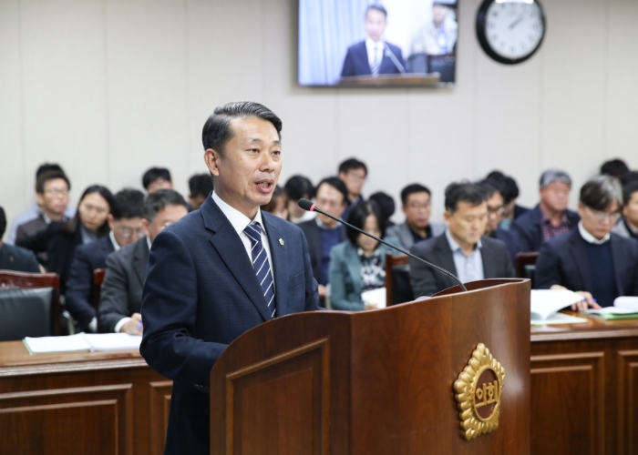 ![]() ‘전라남도 무형유산의 보전 및 진흥에 관한 조례안' 제안설명 중인 이재태 의원  |