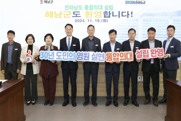 ![]() 해남군, 전남권 국립의대 설립 위한 대학통합 합의 '환영'  |