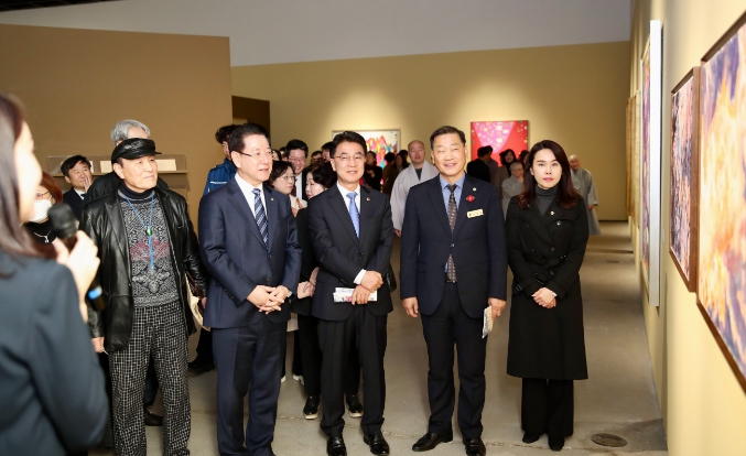 이날 개최된 개관식에는 김영록 지사와 전남도의회 이광일 부의장‧한숙경 의원, 오지오 화백 유족 등 200여 명이 참석한 가운데 개막선언과 기념사, 축사에 이어 유족대표 인사말, 기념촬영, 전시 관람순으로 진행됐다.