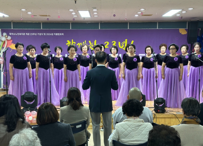 ‘함께한 23년! 빛나는 배움의 여정! 꽃피우다’라는 주제로 열린 작품발표회에서는 사물놀이, 하모니카 공연 등 총 11개 반 120여 명의 어르신들이 참여해 다양한 프로그램을 펼쳤다.