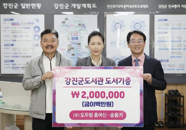 ㈜도두맘은 2020년부터 매년 11월 11일마다 꾸준히 도서를 기증해 왔다. 이번 기증 역시 지역 주민들에게 풍요로운 독서의 기회를 제공하기 위해서다. 도서들은 강진군도서관 자료실에 비치돼 지역민들이 자유롭게 이용할 수 있다.