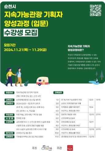 ![]() 순천시 지속가능관광 기획자 양성과정 수강생 모집 |