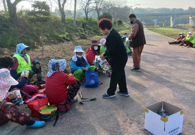대덕읍 내 환경정비를 위해 모여 있던 참여 어르신들은 “대덕읍사무소 뿐 아니라 교회나 여러 단체에서 이렇게 신경을 써줘 항상 감사하다”라며 기쁜 모습으로 간식 꾸러미를 받아들었다.