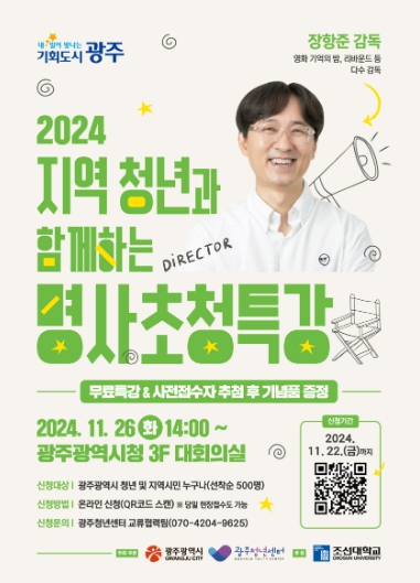이번 특강은 광주시와 광주청년센터가 주최·주관하고 조선대학교가 후원해 무료로 진행되며, 특강 참여를 희망하는 청년과 시민들은 당일 현장 접수하면 된다.